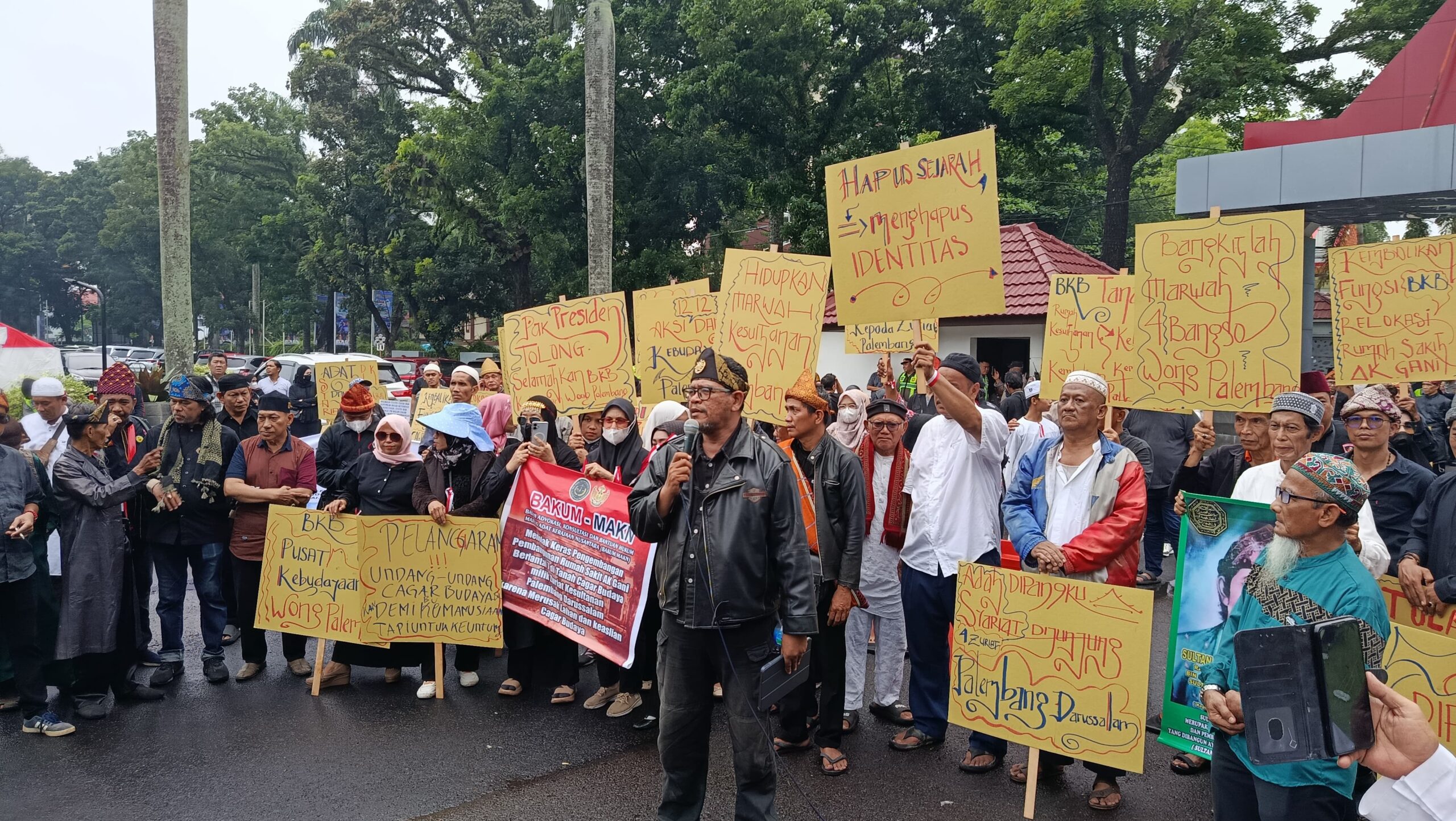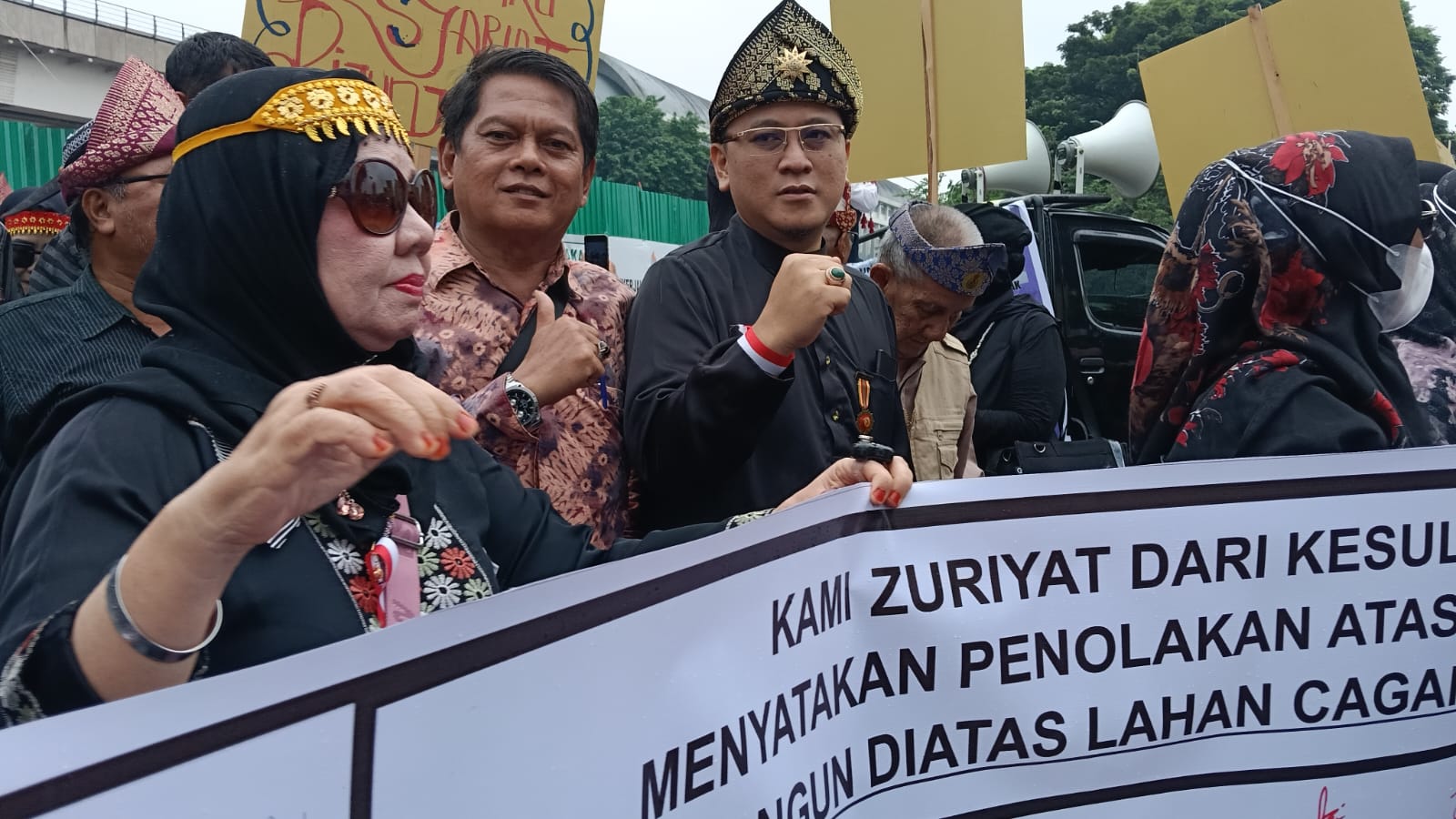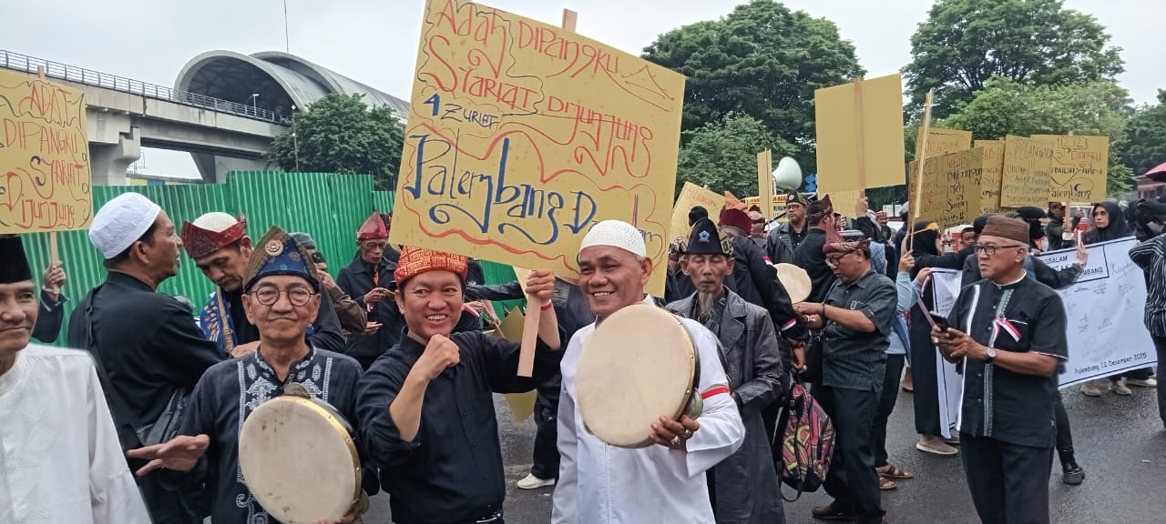 PALEMBANG, KNC.– Ratusan massa dari Zuriat Kesultanan Palembang Darussalam, Aliansi Penyelamat Benteng Kuto Besak (BKB), Aliansi Masyarakat Penyelamat Cagar Budaya (AMPCB), sejarawan, budayawan, dan masyarakat Palembang menggelar aksi “12.12 Penyelamatan BKB” di Kantor Gubernur Sumatera Selatan, Jumat (12/12/2025). Aksi ini merupakan bentuk penolakan terhadap rencana pembangunan gedung baru tujuh lantai Rumah Sakit dr. AK Gani di kawasan cagar budaya Benteng Kuto Besak.